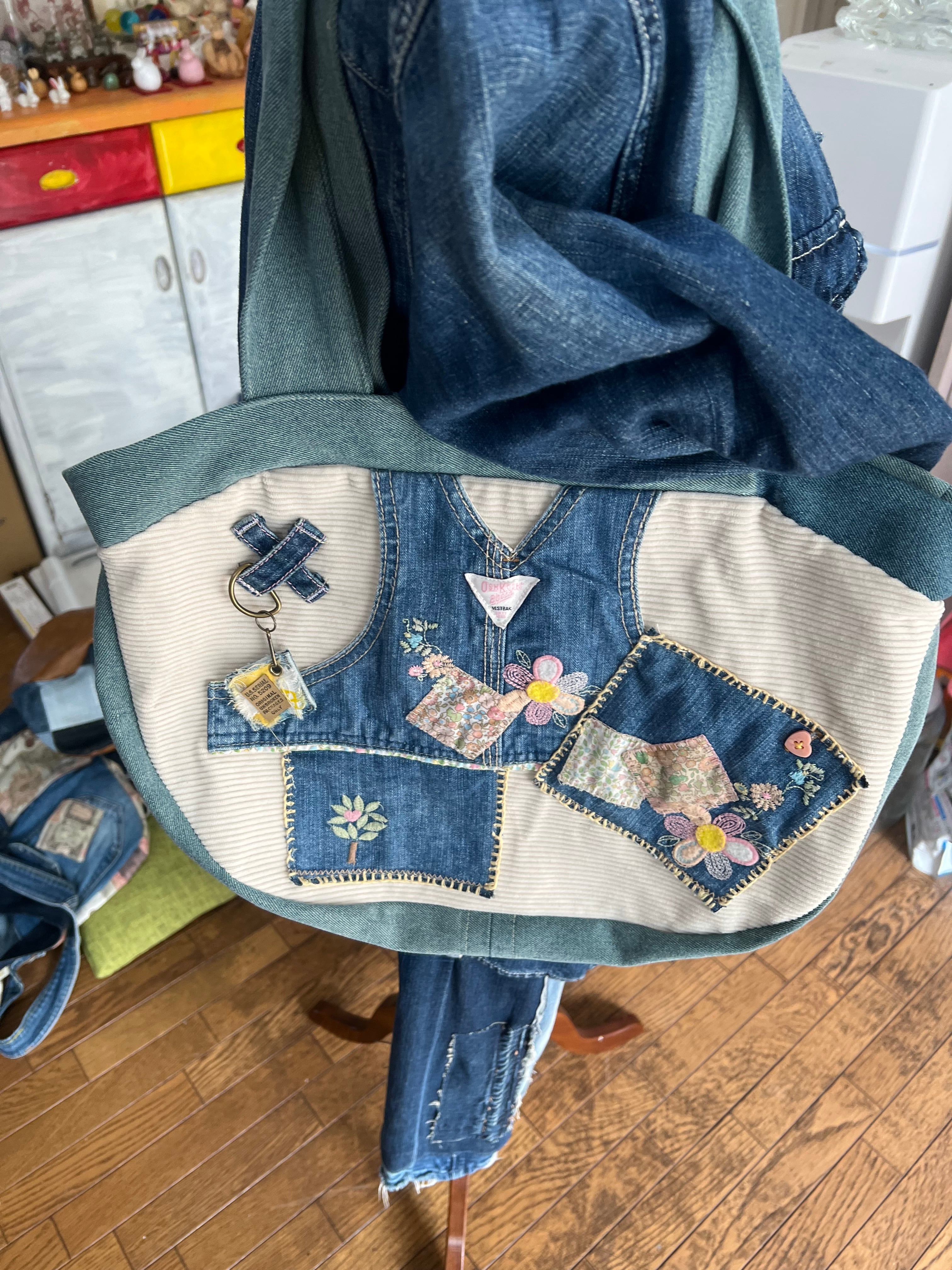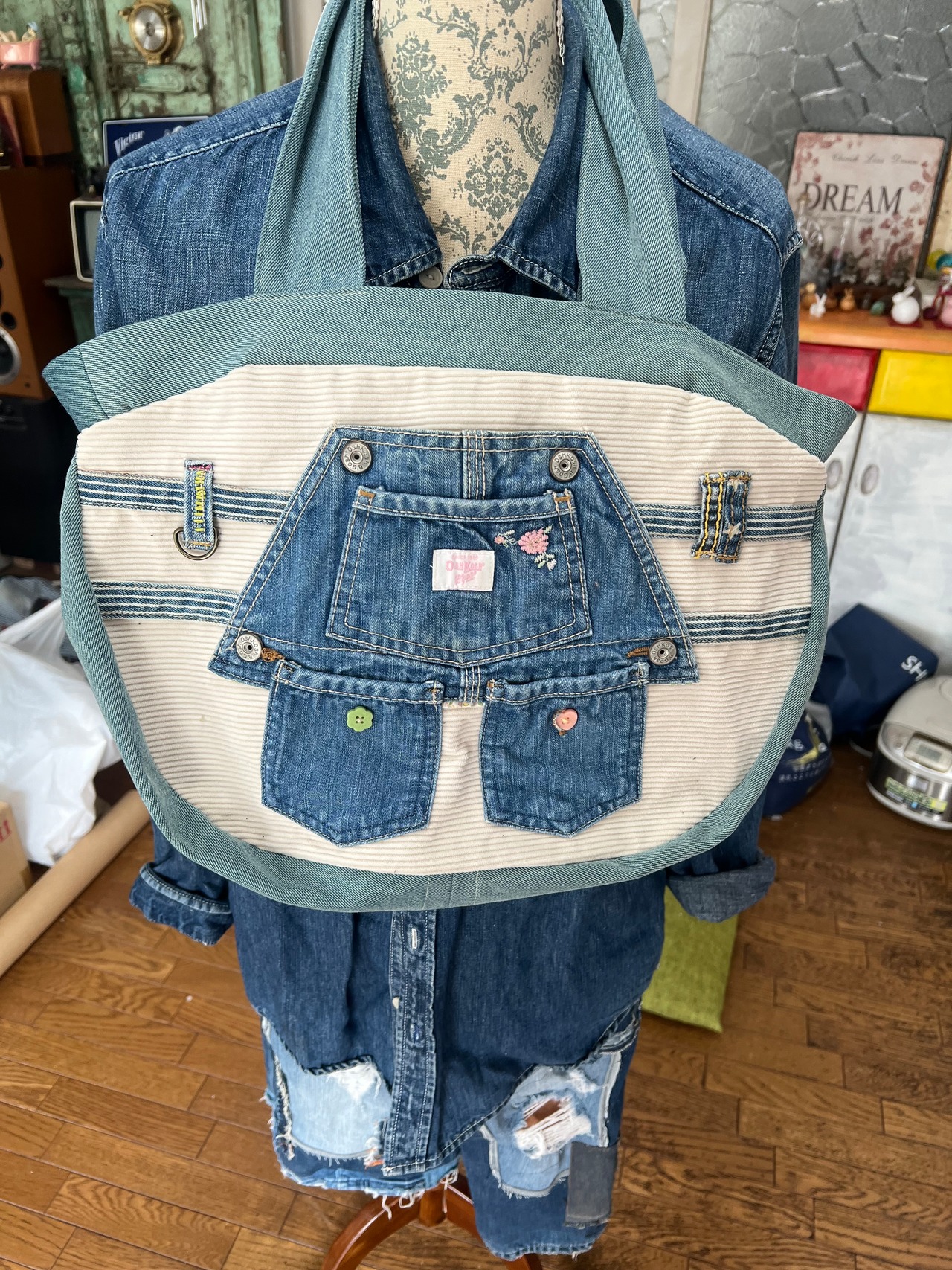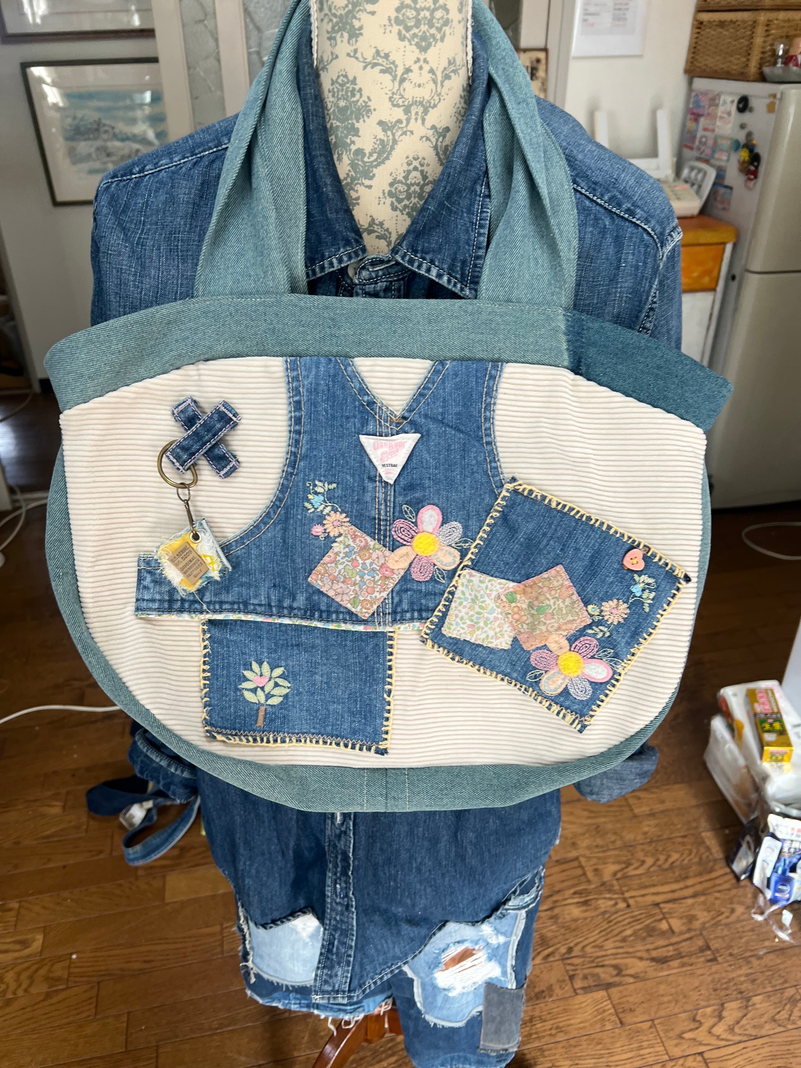 表カバーオールの胸当て部分はポケット
